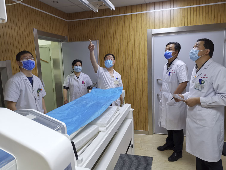 6月11日下午,第二十一党支部书记迟子锋带领物理室、治疗室、模体制作室和维修室核心小组成员开展“学党史悟思想•我为群众办实事”实践活动。大家首先来到加速器治疗室询问工作中存在的问题和不足,技术人员反映:患者深夜治疗过程中直线加速器偶尔会出现故障,维修师从家里赶过来会影响患者治疗,维修组织组长宋永辉老师表示安排维修人员24小时值班在岗,保证机器治疗过程中遇到故障能够第一时间解决,保证患者按时治疗,减少患者等候时间。针对模室做模床位紧张导致患者体膜预约时间较长的问题,支部书记迟子锋决定将门诊一间办公室改为体膜定位间,增加膜室制膜床位,减少患者体膜预约等待时间。